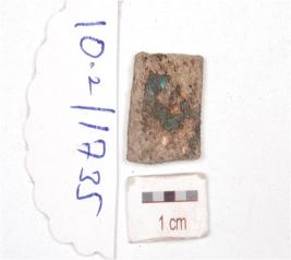 | Description / विवरण | A copper coin, rectangular in shape, surface is rough and corroded. |