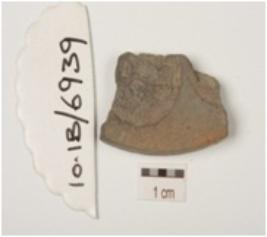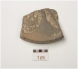 | Description / विवरण | Fragment of terracotta coin mould with a legend in brahmi characters and four negative impressions. |