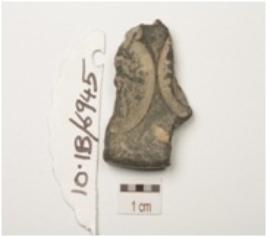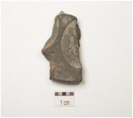 | Description / विवरण | Fragment of terracotta circular coin mould with legend in brahmi characters and negative impression on both sides. |