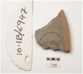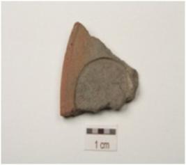 | Description / विवरण | Fragment of terracotta circular coin mould with legend in brahmi characters, negative impression on both sides. |