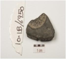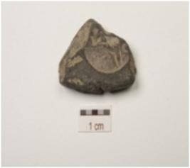 | Description / विवरण | Fragment of terracotta circular coin mould with legend in brahmi characters and three negative impressions. |