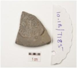 | Description / विवरण | Fragment of terracotta coin mould, two circular coin impressions partly visible on both the surface with negative impression of brahmi legend. |