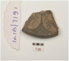 | Description / विवरण | Fragment of terracotta coin mould, three circular coin impressions partly visible on both the surface with negative impression of brahmi legend. |