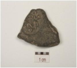 | Description / विवरण | Fragment of terracotta coin mould, three circular coin impressions partly visible on both the surface with negative impression of brahmi legend. |