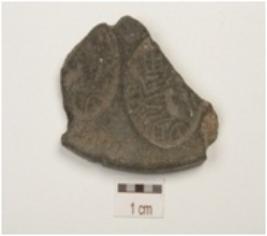 | Description / विवरण | Fragment of terracotta coin mould, four circular coin impressions partly visible on both the surface with negative impression of brahmi legend. |