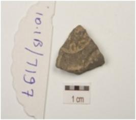 | Description / विवरण | Fragment of terracotta coin mould, two circular coin impressions partly visible on both the surface with negative impression of brahmi legend. |