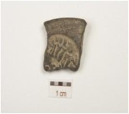 | Description / विवरण | Fragment of terracotta coin mould, two circular coin impressions partly visible on both the surface with negative impression of brahmi legend. |