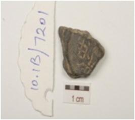| Description / विवरण | Fragment of terracotta coin mould, three circular coin impressions partly visible on both the surface with negative impression of brahmi legend. |