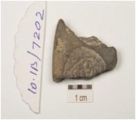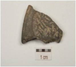 | Description / विवरण | Fragment of terracotta coin mould, two circular coin impressions partly visible on both the surface with negative impression of brahmi legend. |
