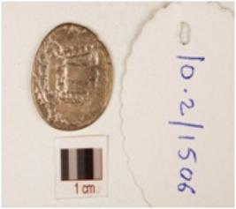 | Description / विवरण | A round shaped silver coin, having image of a human figure on obverse and image of an animal on reverse. |