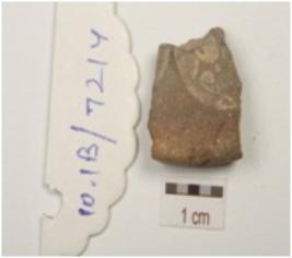 | Description / विवरण | Fragment of terracotta coin mould, two circular coin impressions partly visible on both the surface with negative impression of brahmi legend. |