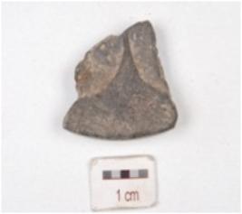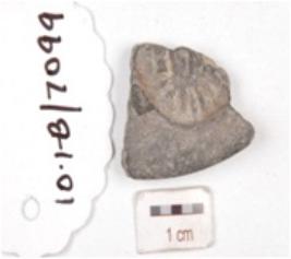 | Description / विवरण | Fragment of a terracotta coin mould, three individual circular coin mould partly visible on both the surfaces with negative impression of brahmi script on one side. |
