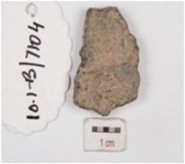 | Description / विवरण | Fragment of a terracotta mould, three individual circular coin mould partly visible on both the surfaces with negative impression of brahmi script on one side. |