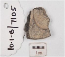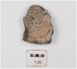 | Description / विवरण | Fragment of a terracotta mould, three individual circular coin mould partly visible on both the surfaces with negative impression of brahmi script on one side. |