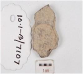 | Description / विवरण | Fragment of a terracotta mould, three individual circular coin mould partly visible on both the surfaces with negative impression of brahmi script on one side. |