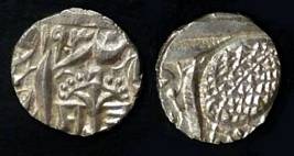 | Description / विवरण | Descrpn./Obv In the centre, a chhatra with Sa and Ta in Gurumukhi script on the left and right of its shaft; traces of the Persian legend seen on the obverse of the bigger Nanakshahi coins of Amritsar mint are also seen. Descrpn./Rev Big peepal leaf and traces of the Persian legend seen on the reverse of the bigger Nanakshahi coins of Amiritsar mint - Shri Amritsarjiv zarb [VS Year] Takht maimanat julus manus Akal Bakht. Especially traces of alif of Akal and te of Takht and maimanat are seen |