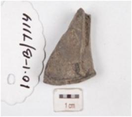 | Description / विवरण | Fragment of a terracotta mould, three individual circular coin mould partly visible on both the surfaces with negative impression on both sides. |