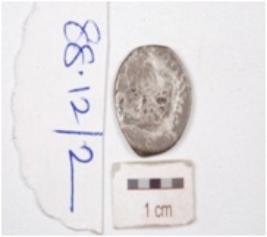 | Description / विवरण | A sliver coin, round in shape, having bust of king and irregular punch marks all over bust on obverse side, and reverse side having chaitya surrounded by crescent and tarnished surface. |