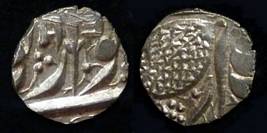 | Description / विवरण | Descrpn./Obv In the centre, a chhatra with Sa and Ta in Gurumukhi script on the left and right of its shaft; traces of the Persian legend seen on the obverse of the bigger Nanakshahi coins of Amritsar mint are also seen. Descrpn./Rev Big peepal leaf and traces of the Persian legend seen on the reverse of the bigger Nanakshahi coins of Amiritsar mint - Shri Amritsarjiv zarb [VS Year] Takht maimanat julus manus Akal Bakht. Especially traces of alif of Akal and te of Takht and maimanat are seen |