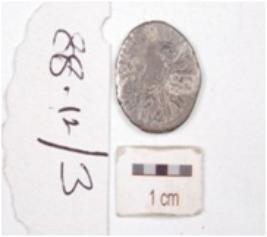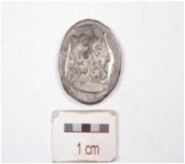 | Description / विवरण | A silver coin, round in shape, having bust of king and punch marks all over the bust, and reverse side having chaitya, tarnished surface and legend illigible. |
