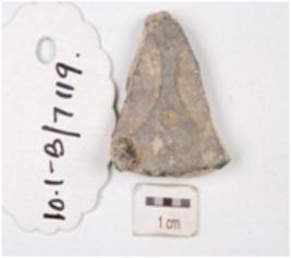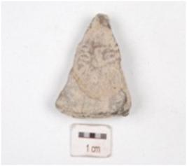 | Description / विवरण | Fragment of a terracotta coin mould, three individual circular coin moulds partly visible on both the surface with negative impression of brahmi script on one side. |