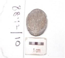 | Description / विवरण | A silver coin, round in shape, having image of king bust of king bust and different punch mark around bust on obverse side, on reverse side having chaitya, tarnished surface and legend illigible. |