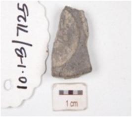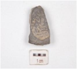 | Description / विवरण | Fragment of a terracotta coin mould, three individual circular coin moulds partly visible on both the surfaces with negative impression of brahmi script on one side. |