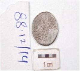 | Description / विवरण | A silver coin, round in shape, having bust of king on obverse side, and chaitya on reverse side, slightly tarnished surface and legend illigible. |