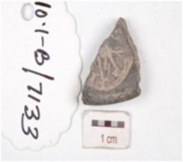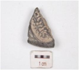 | Description / विवरण | Fragment of a terracotta coin mould, three individual circular coin moulds, partly visible on both the surfaces with negative impression of brahmi script on one side. |