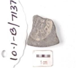 | Description / विवरण | Fragment of a terracotta mould three individual circular coin mould partly visible on both the surfaces with negative impression of brahmi script on one side. |