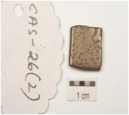 | Description / विवरण | A punchmarked silver coin, square in shape, punch marks on obverse side and symbols are not clearly visible. |