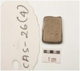 | Description / विवरण | A silver punchmarked coin, square shaped, punchmarks on obverse side and symbols not visible clearly. |