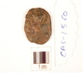 | Description / विवरण | A circular shaped copper coin, rough surface and images are not clearly visible on both sides. |