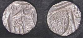 | Description / विवरण | Descrpn./Obv In the centre, a chhatra with Sa and Ta in Gurumukhi script on the left and right of its shaft; traces of the Persian legend seen on the obverse of the bigger Nanakshahi coins of Amritsar mint are also seen. Descrpn./Rev Big peepal leaf and traces of the Persian legend seen on the reverse of the bigger Nanakshahi coins of Amiritsar mint - Shri Amritsarjiv zarb [VS Year] Takht maimanat julus manus Akal Bakht. Especially traces of alif of Akal and te of Takht and maimanat are seen |