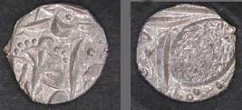 | Description / विवरण | Descrpn./Obv In the centre, a chhatra with Sa and Ta in Gurumukhi script on the left and right of its shaft; traces of the Persian legend seen on the obverse of the bigger Nanakshahi coins of Amritsar mint are also seen. Descrpn./Rev Big peepal leaf and traces of the Persian legend seen on the reverse of the bigger Nanakshahi coins of Amiritsar mint - Shri Amritsarjiv zarb [VS Year] Takht maimanat julus manus Akal Bakht. Especially traces of alif of Akal and te of Takht and maimanat are seen |