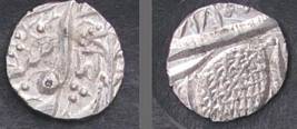 | Description / विवरण | Descrpn./Obv In the centre, a chhatra with Sa and Ta in Gurumukhi script on the left and right of its shaft; traces of the Persian legend seen on the obverse of the bigger Nanakshahi coins of Amritsar mint are also seen. Descrpn./Rev Big peepal leaf and traces of the Persian legend seen on the reverse of the bigger Nanakshahi coins of Amiritsar mint - Shri Amritsarjiv zarb [VS Year] Takht maimanat julus manus Akal Bakht. Especially traces of alif of Akal and te of Takht and maimanat are seen |