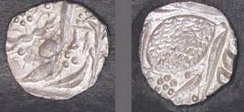 | Description / विवरण | Descrpn./Obv In the centre, a chhatra with Sa and Ta in Gurumukhi script on the left and right of its shaft; traces of the Persian legend seen on the obverse of the bigger Nanakshahi coins of Amritsar mint are also seen. Descrpn./Rev Big peepal leaf and traces of the Persian legend seen on the reverse of the bigger Nanakshahi coins of Amiritsar mint - Shri Amritsarjiv zarb [VS Year] Takht maimanat julus manus Akal Bakht. Especially traces of alif of Akal and te of Takht and maimanat are seen |