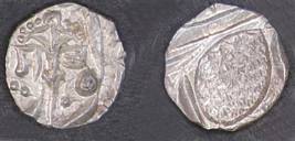 | Description / विवरण | Descrpn./Obv In the centre, a chhatra with Sa and Ta in Gurumukhi script on the left and right of its shaft; traces of the Persian legend seen on the obverse of the bigger Nanakshahi coins of Amritsar mint are also seen. Descrpn./Rev Big peepal leaf and traces of the Persian legend seen on the reverse of the bigger Nanakshahi coins of Amiritsar mint - Shri Amritsarjiv zarb [VS Year] Takht maimanat julus manus Akal Bakht. Especially traces of alif of Akal and te of Takht and maimanat are seen |