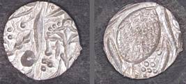 | Description / विवरण | Descrpn./Obv In the centre, a chhatra with Sa and Ta in Gurumukhi script on the left and right of its shaft; traces of the Persian legend seen on the obverse of the bigger Nanakshahi coins of Amritsar mint are also seen. Descrpn./Rev Big peepal leaf and traces of the Persian legend seen on the reverse of the bigger Nanakshahi coins of Amiritsar mint - Shri Amritsarjiv zarb [VS Year] Takht maimanat julus manus Akal Bakht. Especially traces of alif of Akal and te of Takht and maimanat are seen |