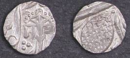 | Description / विवरण | Descrpn./Obv In the centre, a chhatra with Sa and Ta in Gurumukhi script on the left and right of its shaft; traces of the Persian legend seen on the obverse of the bigger Nanakshahi coins of Amritsar mint are also seen. Descrpn./Rev Big peepal leaf and traces of the Persian legend seen on the reverse of the bigger Nanakshahi coins of Amiritsar mint - Shri Amritsarjiv zarb [VS Year] Takht maimanat julus manus Akal Bakht. Especially traces of alif of Akal and te of Takht and maimanat are seen |