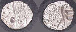 | Description / विवरण | Descrpn./Obv In the centre, a chhatra with Sa and Ta in Gurumukhi script on the left and right of its shaft; traces of the Persian legend seen on the obverse of the bigger Nanakshahi coins of Amritsar mint are also seen. Descrpn./Rev Big peepal leaf and traces of the Persian legend seen on the reverse of the bigger Nanakshahi coins of Amiritsar mint - Shri Amritsarjiv zarb [VS Year] Takht maimanat julus manus Akal Bakht. Especially traces of alif of Akal and te of Takht and maimanat are seen |