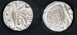 | Description / विवरण | Descrpn./Obv In the centre, a chhatra with Sa and Ta in Gurumukhi script on the left and right of its shaft; traces of the Persian legend seen on the obverse of the bigger Nanakshahi coins of Amritsar mint are also seen. Descrpn./Rev Big peepal leaf and traces of the Persian legend seen on the reverse of the bigger Nanakshahi coins of Amiritsar mint - Shri Amritsarjiv zarb [VS Year] Takht maimanat julus manus Akal Bakht. Especially traces of alif of Akal and te of Takht and maimanat are seen |