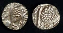 | Description / विवरण | Descrpn./Obv In the centre, a chhatra with Sa and Ta in Gurumukhi script on the left and right of its shaft; traces of the Persian legend seen on the obverse of the bigger Nanakshahi coins of Amritsar mint are also seen. Descrpn./Rev Big peepal leaf and traces of the Persian legend seen on the reverse of the bigger Nanakshahi coins of Amiritsar mint - Shri Amritsarjiv zarb [VS Year] Takht maimanat julus manus Akal Bakht. Especially traces of alif of Akal and te of Takht and maimanat are seen |