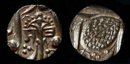 | Description / विवरण | Descrpn./Obv In the centre, a chhatra with Sa and Ta in Gurumukhi script on the left and right of its shaft; traces of the Persian legend seen on the obverse of the bigger Nanakshahi coins of Amritsar mint are also seen. Descrpn./Rev Big peepal leaf and traces of the Persian legend seen on the reverse of the bigger Nanakshahi coins of Amiritsar mint - Shri Amritsarjiv zarb [VS Year] Takht maimanat julus manus Akal Bakht. Especially traces of alif of Akal and te of Takht and maimanat are seen |