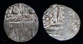 | Description / विवरण | Descrpn./Obv In the centre, a chhatra with Sa and Ta in Gurumukhi script on the left and right of its shaft; traces of the Persian legend seen on the obverse of the bigger Nanakshahi coins of Amritsar mint are also seen. Descrpn./Rev Big peepal leaf and traces of the Persian legend seen on the reverse of the bigger Nanakshahi coins of Amiritsar mint - Shri Amritsarjiv zarb [VS Year] Takht maimanat julus manus Akal Bakht. Especially traces of alif of Akal and te of Takht and maimanat are seen |