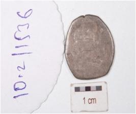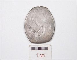 | Description / विवरण | A silver coin, round in shape, having indeterminate image on obverse and reverse surface is defaced. |