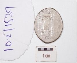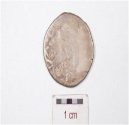 | Description / विवरण | A silver coin, round in shape, having human image on obverse and indeterminate on reverse side. |