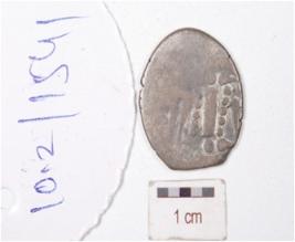 | Description / विवरण | A silver coin, round in shape having floral motif on obverse side and indeterminate image on reverse side. |
