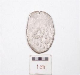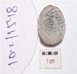 | Description / विवरण | A silver coin, round in shape, irregular edges, having indeterminate motif on both side surface. |