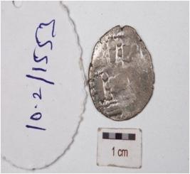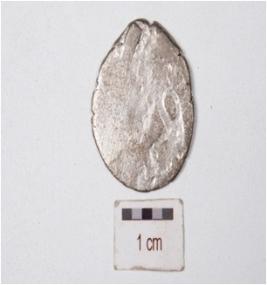 | Description / विवरण | A silver coin, round in shape, having unidentified motif on both side. |